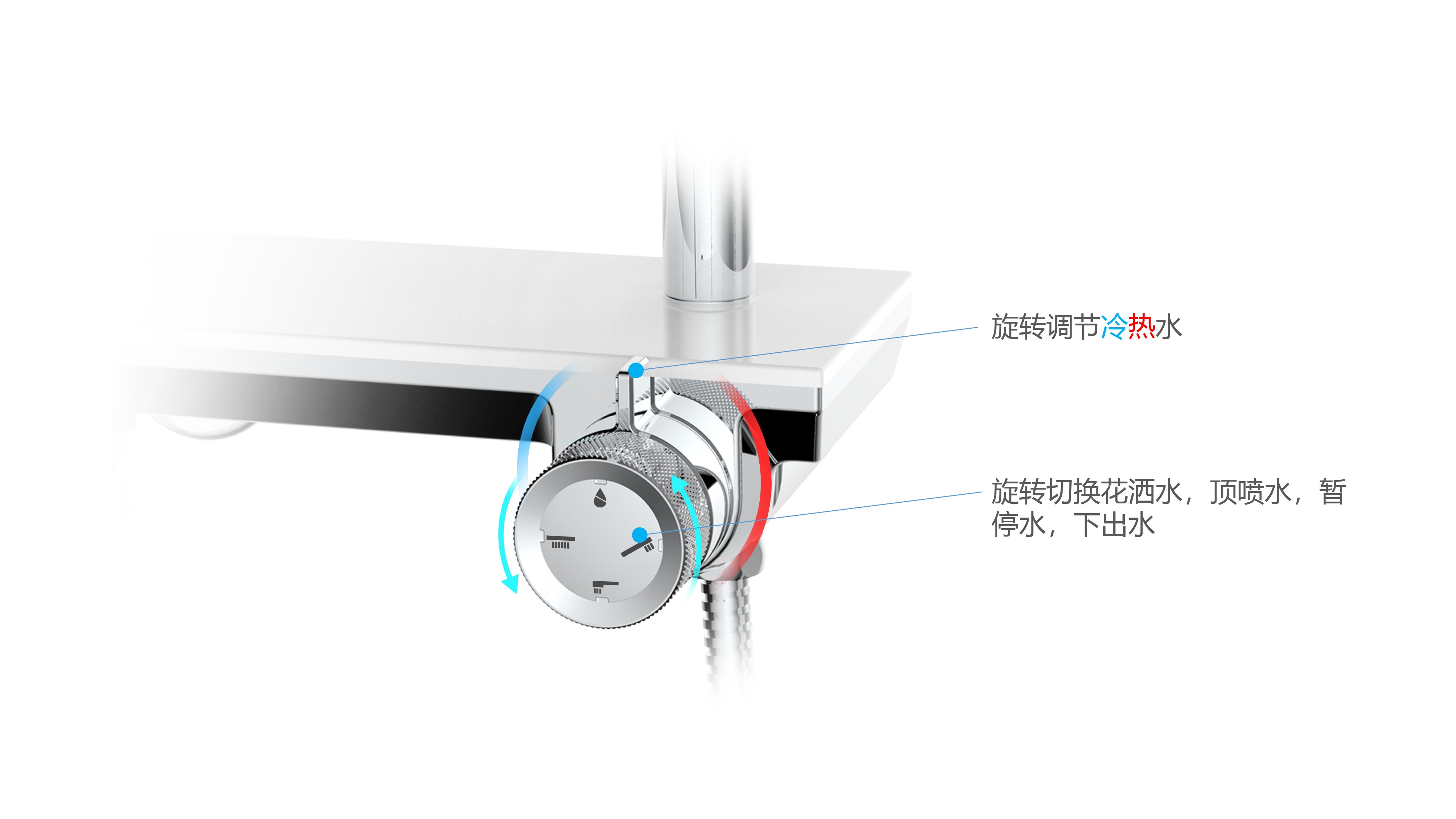 帶下出水大平臺(tái)置物;旋鈕切換四種模式出水